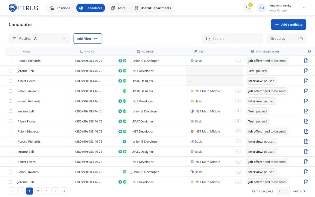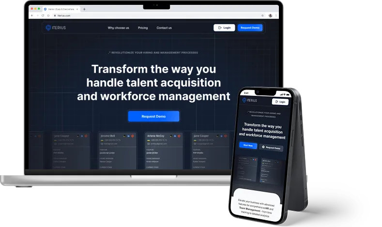 Iterius was designed for a mid-sized company scaling its operations and HR processes. The goal was to create a single intelligent AI-powered platform that covered everything from applicant tracking and onboarding to advanced employee analytics and resource planning. The client emphasized simplicity, speed, and adaptability — and that shaped every sprint, decision, and delivery. We aimed to build not just a tool but a long-term ecosystem for modern HR excellence.
