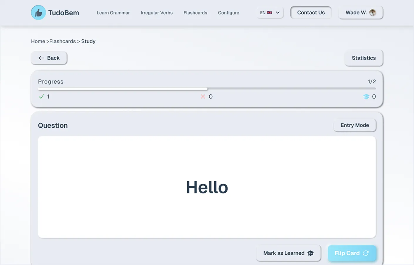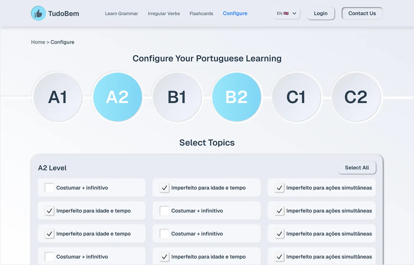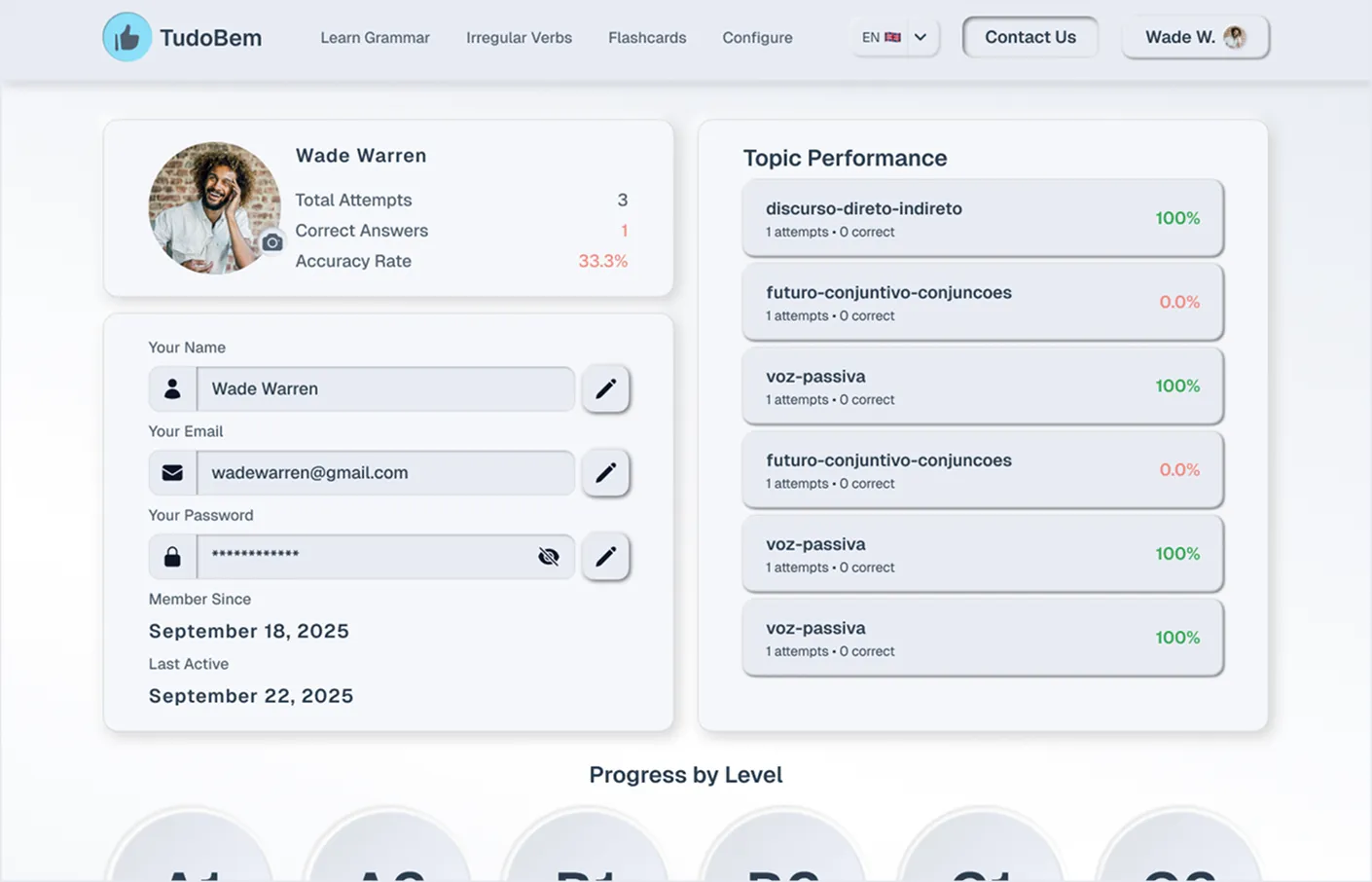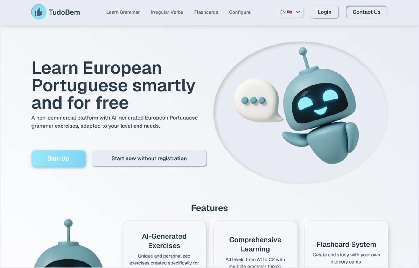 Tudobem.app is a solo built project using AI to deliver smart, adaptive Portuguese learning.